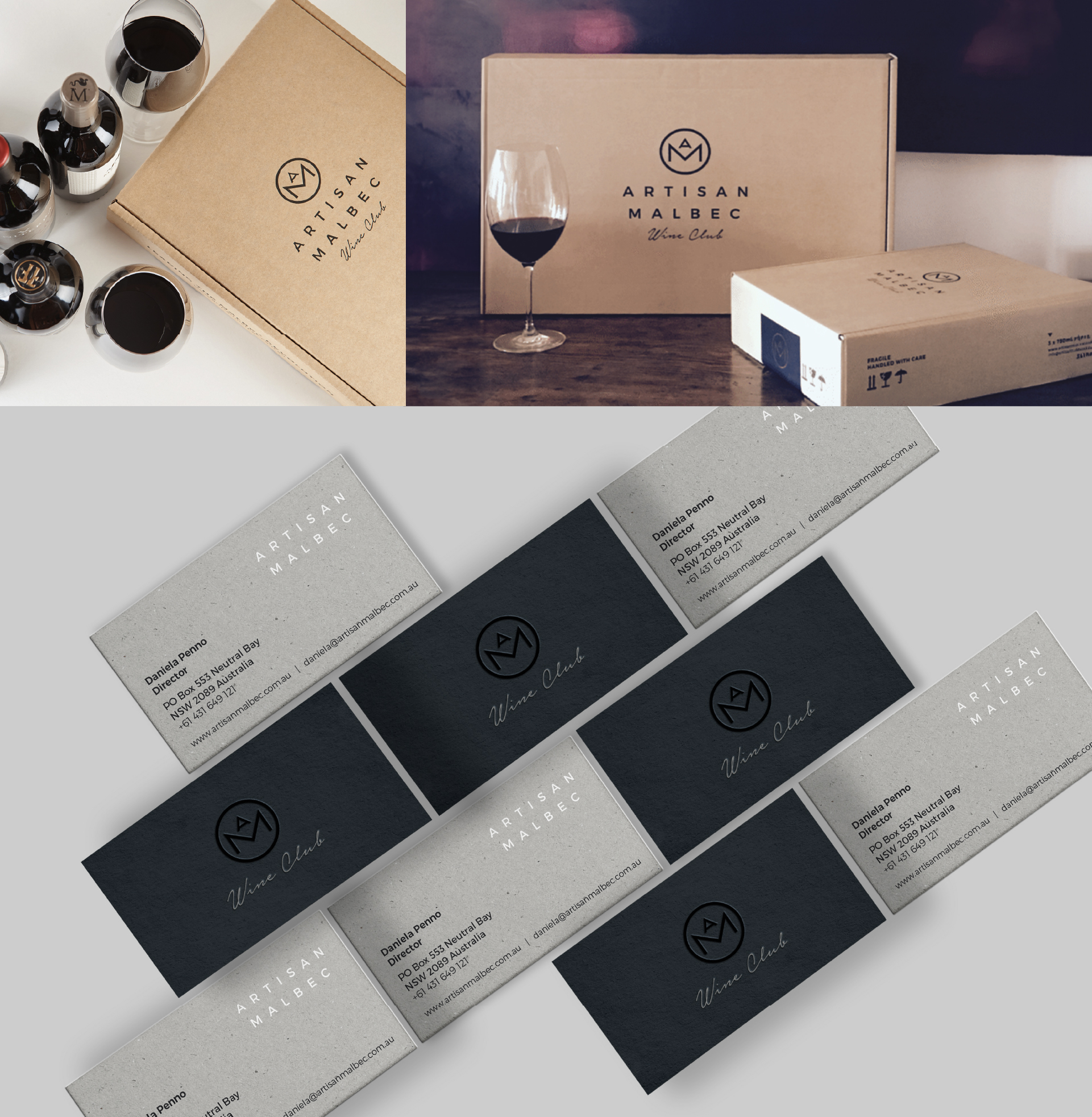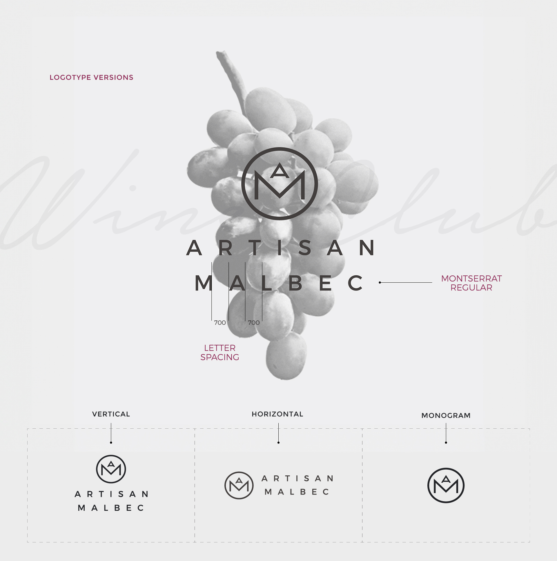 Visual identity design for "Artisan Malbec”, a company dedicated to online wine sales that offers its customers the best Malbec wines in to the world, from Sydney, Australia.