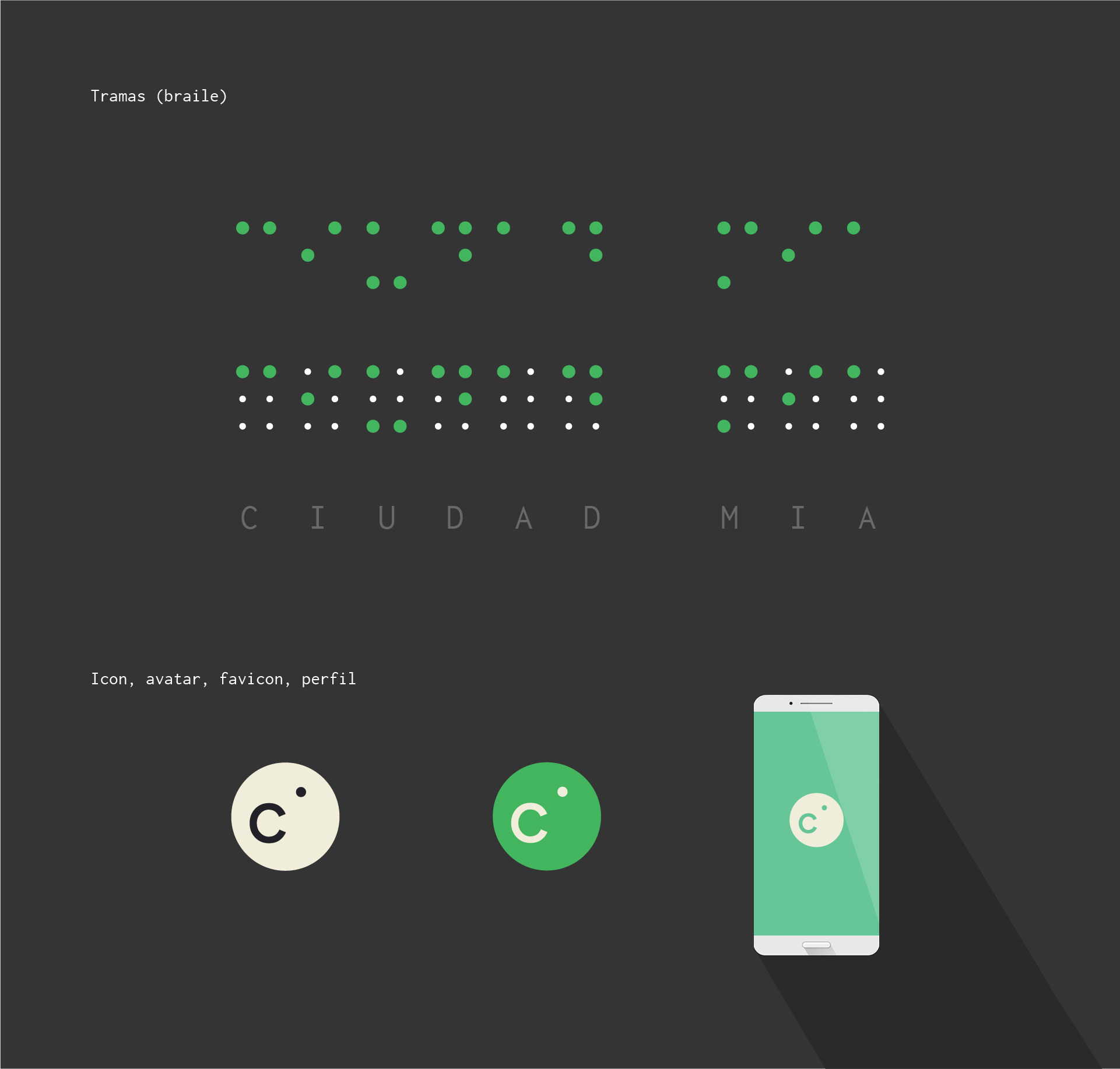 Legible and minimalist, the visual identity proposes a system inspired by the Braille language.The logo combines both codes —Spanish and Braille— into a single visual construction.